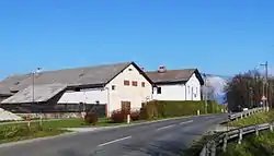 A plague column stands at the north edge of the settlement, at the border with neighboring Skaručna and the intersection with the road to Vojsko. The column is carved from sandstone and is believed to date from the 17th century.[4]
