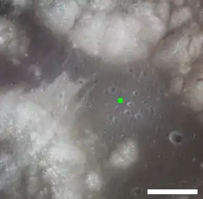 ![]() Location of Powell crater in Taurus–Littrow valley. South Massif is at lower left, North Massif is at top center, and Sculptured Hills are at upper right. Scale bar is 5 km | |