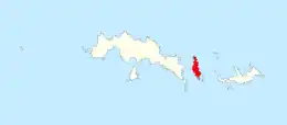 Powell Island is a narrow island 13 km (8.1 mi) long and 4 km (2.5 mi) wide, lying between Coronation and Laurie Islands in the central part of the South Orkney Islands of Antarctica. Its southern end lies 7 km east of the south-western extremity of Coronation Island, between Lewthwaite Strait and Washington Strait.[1] A steep-sided rocky ridge forms the western part of the island; to the east of it lies a broad icy piedmont which is visibly supported in the east by a few low-lying rock outcrops.,[2]