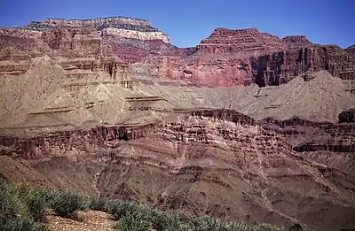 | Type of rock | Kaibab Limestone, Toroweap Formation, Coconino Sandstone, Hermit Shale, Supai Group, Redwall Limestone, Muav Limestone, Bright Angel Shale |