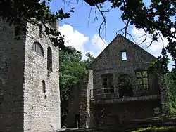 To the northwest in the valley, the castle chapel, the Late Gothic former Chapel of St. Nicholas, has survived.