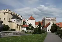 Dolní Gate ("Lower Gate"; also called Písecká) is a preserved element of stone town fortifications, which comes from the first half of the 15th century. The gate is from around 1527 and creates the entrance to the historic centre.[16]