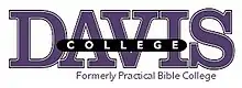 Davis College (formerly Practical Bible College) is a private Baptist bible college. It is affiliated with the Baptist Convention of New York and endorsed by the Baptist Convention of Pennsylvania/South Jersey.[1] Originally located in Johnson City, New York, the school currently offers its BRE degree at the campus of the Word of Life Bible Institute, in Pottersville, New York, with which the school has a close relationship.[2]