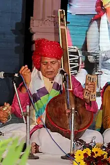 Prahlad Singh Tipaniya is an Indian folk singer who performs Kabir bhajans in the Malwi folk style from Madhya Pradesh.[2][3] He performs along with a group of tambura, khartal, manjira, dholak, harmonium, timki, and violin players.