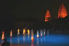 Ramayana Ballet Prambanan is a visualization of Kakawin Ramayana, Javanese version of Ramayana story, performed near the Prambanan temple, Indonesia.[1] The Ramayana Ballet at the Prambanan isn't like the Western ballet performance, It's more like the Wayang wong.