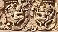 The temple is composed of five sandstone and brick towers, on a base made of laterite. There are sandstone bas-reliefs on the main tower depicting Shiva, Brahma, Ganesha, Vishnu and Uma. The door frames have sets of apsaras, devatas and dvarapalas. The temple was converted for use by Buddhists in the 16th century. Architectural contributions influenced by Laos are evident on the tower roofs. The name comes from the Sanskrit word of South India shikhara, meaning tower sanctuary.