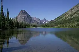 Pray Lake is located in Glacier National Park, in the U. S. state of Montana. The lake is approximately 100 yards (91 m) northeast of Two Medicine Lake and is only 1 foot (0.30 m) lower in altitude with a short stream connecting the two. A vehicular access National Park Service campground is adjacent to the lake.[2]