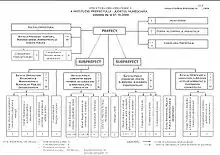 Section 4 of this article was added in 2003; the remainder dates to 1991. The prefect's role is further defined by a 2004 law, modified by decrees in 2004 and 2005, and by a law in 2006.[8] Among the roles of the office is to ensure that the Constitution and laws are followed; to help fulfil the Government's programme; to help maintain social peace; to cooperate with local authorities in order to set development priorities; to verify the legality of acts done by the county or local councils and mayors; to ensure emergency preparedness; to promote integration into the European Union; to decide with which similar institutions in Romania or abroad to cooperate; to ensure that national minorities are able to communicate with Government institutions in localities where minorities make up over 20% of the population. The principles that are supposed to guide the prefect are legality, impartiality and objectivity; transparency and free access to public information; efficiency; responsibility; professionalism; and a citizen-oriented attitude.[9] The Interior Ministry is the principal allocator of prefectures' budgets, while their activity is coordinated by the Prime Minister and they are subordinate to the Government.[10]