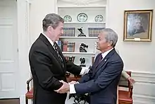 - ↑ "แจ้งความสำนักนายกรัฐมนตรี เรื่อง พระราชทานพระบรมราชานุญาต ประดับเครื่องอิสริยาภรณ์ต่างประเทศ" (PDF). ราชกิจจานุเบกษา. 102 (60ง ฉบับพิเศษ): 12. 16 May 1985. Archived from the original (PDF) on 4 March 2016. Retrieved 5 March 2021.