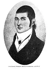 Presley Neville O'Bannon was born in Fauquier County, Virginia, to William O'Bannon, a captain of the Continental Army in the American Revolutionary War (1775–1783), and Anne Neville, a sister of General John Neville, commander of Fort Pitt (formerly French Fort Duquesne, later Pittsburgh in western Pennsylvania) during the Revolution. O'Bannon was probably named after Neville's son Presley, who was aide-de-camp to the Marquis de Lafayette.[4]
