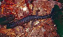 The prickly skink is a habitat specialist restricted to closed canopy forest in high rainfall areas (rainforests) of the Australian Wet Tropics, extending from lowland tropical rainforest to montane forests on the adjacent hills and tablelands.[5] Within these rainforests the prickly skink occurs within rotting logs and leaf litter and although locally abundant in some areas, it is rarely seen without searching.[5] This is a well buffered environment with very low seasonality.[6] This species is ovoviviparous, and despite living in an equable climate, reproduction is seasonal, with females giving birth to 2-5 young in February - April.[7] Animals mature at a snout-vent length (SVL) of around 50 mm (2.0 in) and grow to a maximum SVL of 85 mm (3.3 in), with no obvious difference in external morphology or size between females and males.[7] A skeletochronological study suggested that this corresponds with an age of 5 years at maturity and a maximum life-span around 10 years.[7] Unlike most skinks this is a vocal species with high-pitched but audible calls recorded in the field and in captivity, associated with handling and with aggressive interactions among females.[8]
