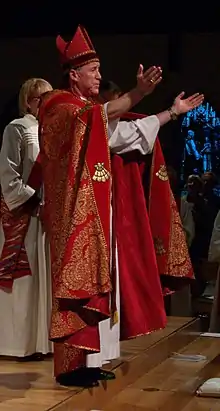 The Primate of the Anglican Church of Canada (referred to in older documents as the Primate of All Canada[1] or the Primate of Canada[2]) is the primate of the Anglican Church of Canada and is elected by the General Synod of the Church from among a list of five bishops nominated by the House of Bishops. Since 1969, the role of diocesan (or metropolitan, assistant, suffragan or coadjutor) bishop is relinquished upon their election, as the Primate assumes the role of Chief Executive Officer of the National Church Office, which is located in Toronto. Additionally, the Primate serves as the President of the General Synod, the chair of the Council of General Synod and the chair of the House of Bishops. The Primate holds the title of Archbishop and is styled as "The Most Reverend (Name), Primate of Canada".