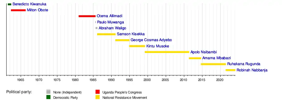 — | 21 June 2021 | Incumbent | 2 years, 210 days | National Resistance Movement | |