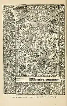 The 14th century saw the primer become a valued devotional text among the laity, a value modern historians have understood through its regular inclusion in wills from 1323 onward.[9]: 1–2 During the late Middle Ages, manuscript and later printed primers became the primary devotional literature of the English laity. The first printed primer was published in Latin in 1494 and contained additional devotions to the typical but unstandardized pattern.[7]: 24 Religious literature, including primers, accounted for a substantial proportion of all publications in England through the early 16th century. Bound books like primers were supplemented by a variety of pamphlets oriented towards private devotion, including adaptions of the Psalms, sermons, and religious educational texts.[9]: 1–2 Since English demand outstripped domestic printing capacity, Parisian printers like François Regnault dominated the market for Sarum primers.[10]: 229