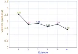 The first episode was the most watched episode of the fifth series on both Watch and ITV (with 618,000 and 2.55 million viewers, respectively). Although the last episode marked the low point on ITV, the least watched episode on Watch was the fourth episode, with 438,000 viewers.[1]