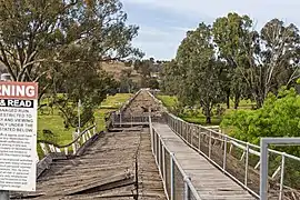- ↑ "Fond memories, sad farewell as demolition begins on Gundagai's historic timber bridge". ABC News. 2 November 2021. Retrieved 24 November 2021.