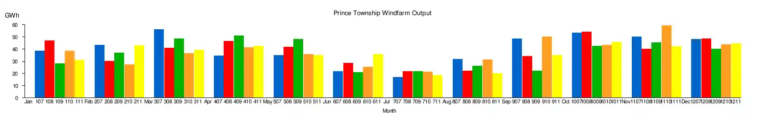Prince Wind Farm is a large wind farm in northern Ontario. Prince Wind Farm is owned by Brookfield Power Prince Wind LP, a subsidiary of Brookfield Power. It is located north of Sault Ste. Marie, Ontario, mostly within the township of Prince but also extending into Unorganized Algoma (Dennis and Pennefather Townships), however it is visible from as far away as Pancake Bay Provincial Park and Whitefish Point. Prince I, 99 MW was completed in September 2006, Prince II, 90 MW, in November 2006. The average capacity factor for the first five full years of operation was 27.2%.