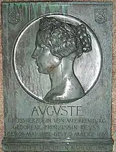 Augusta was buried in the gardens of Schwerin Castle and by 1905, a memorial portrait was built by sculptor Wilhelm Wandschneider.