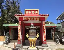 Princess Babao Temple is located next to a beach in Kenting National Park. The small temple is divided into three halls: Wanyinggong (unnamed deceased souls) has an altar in the middle, while Princess Babao and Tudigong has an altar on each side. A portrait of a White woman hangs above Princess Babao's altar, and worshipers typically present coffee and red wine to Princess Babao.[2]