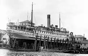 ![]() Princess Royal on shipways at Victoria Machinery Depot circa 1910. | |
