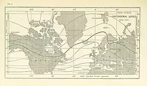 A map of isothermal lines across North America from Lyell's Principles of Geology