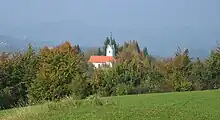 The local church is dedicated to Saint Lambert and belongs to the Parish of Stična. It was built in 1497 on the site of a medieval castle where Viridis Visconti, the wife of Leopold III, Duke of Austria, lived after her husband's death in 1386 until her own death in 1414.[5]