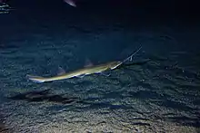 The Japanese sawshark (Pristiophorus japonicus) is a species of sawshark in the family Pristiophoridae. This shark has a long, narrow rostrum. Its first dorsal fin originates behind the tips of the pectoral fins, and its caudal fin is angled almost straight in line with the body. The Japanese sawshark reaches a maximum length of up to 1.36 m (4 ft 6 in).