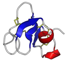 - ↑ Reyes-López CA, Hernández-Santoyo A, Pedraza-Escalona M, Mendoza G, Hernández-Arana A, Rodríguez-Romero A (Jan 2004). "Insights into a conformational epitope of Hev b 6.02 (hevein)". Biochemical and Biophysical Research Communications. 314 (1): 123–30. doi:10.1016/j.bbrc.2003.12.068. PMID 14715255.