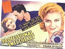 Professional Sweetheart is a 1933 American pre-Code romantic comedy directed by William A. Seiter from a screenplay by Maurine Watkins. It stars Ginger Rogers in her first film for RKO Radio Pictures, with Norman Foster, ZaSu Pitts and Frank McHugh. The film is a satire of the radio industry.
