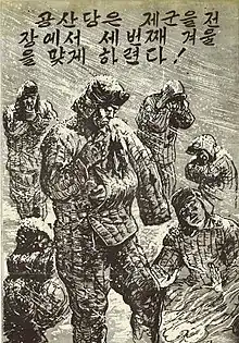 - ↑ Hoh, Anchi. “Korean War Propaganda Leaflet Collection at the Library of Congress.” Korean War Propaganda Leaflet Collection at the Library of Congress | 4 Corners of the World: International Collections and Studies at the Library of Congress, September 26, 2017. https://blogs.loc.gov/international-collections/2017/09/korean-war-propaganda-leaflet-collection-at-the-library-of-congress/.