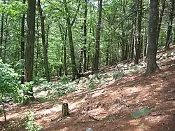 Waltham acquired approximately 75 acres (30 ha) for the park from private landowners in 1893. This area comprised the two peaks and their immediate surroundings. Additional land was purchased over several decades and the park reached 219 acres (89 ha) in 1927.[2] It was improved with trails,[3] picnic areas, fences and other amenities and generally well maintained through the first half of the 20th century. Vegetation management included the clearing of dead trees and underbrush, as well as the planting of thousands of trees.[4] As a result of additional land purchases, the parked reached 250 acres by 1997.[2] Its current size is 273 acres.[5]
