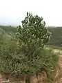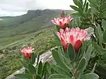 The plant dies after a fire but the seeds survive. The seeds are stored in a shell and released after they are ripe and are dispersed by the wind. The plant is unisexual. Pollination takes place through the action of birds. The plant grows on mountainous acid veld and fynbos at altitudes of 1,200 - 2,300 m. In Afrikaans it is known as the lippeblomsuikerbos. The plant's national number is 98.[2]