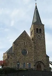 The Protestant Church (Evangelische Kirche) in Wilnsdorf, North Rhine-Westphalia, Germany, was completed in 1913. It has been the main church for merged parishes from 2010. The official name of the new parish is Evangelisch-Reformierte Kirchengemeinde Rödgen-Wilnsdorf (Reformed parish),[1] The parish is part of the Kirchenkreis Siegen in North Rhine Westphalia.[2]