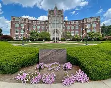 Harkins Hall (1919) designed by Matthew Sullivan in the Collegiate Gothic style