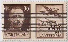 In late October 1944 the German army and most of the Italian civilian administration abandoned the city.[4] On October 31, 1944, the Partisans seized the city, until then an official part of Mussolini's Italian Social Republic. At the start of World War II, Zadar had a population of 24,000 (nearly all Dalmatian Italians) but, by the end of 1944, this had decreased to 6,000.[4] Formally, the city remained under Italian sovereignty until September 15, 1947[5] (Paris Peace Treaty).