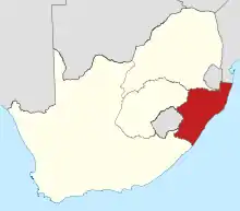 | KwaZulu-Natal | iKwaZulu-Natali (Zulu) | Pietermaritzburg[n 1] | Durban | 94,361 km2 (36,433 sq mi) | 12,423,907 | 131.7/km2 (341/sq mi) | ![]() |