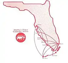 In the following years, the route network in Florida and New England was expanded, and in 1968 a Douglas DC-3 was bought at $50,000 and refurbished at a cost of $150,000 to fill the demand.[2] In 1975, a Martin 4-0-4 was added, and in 1980, PBA had a fleet of twelve DC-3s and four Martin 4-0-4s as well as a small number of smaller Cessnas and Pipers.