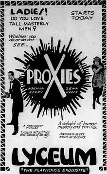 1. "Proxies: Program Offering that Is Mildly Entertaining". Film Daily. New York City: Wyd's Films and Film Folks, Inc. 16 (17): 10. April 17, 1921. Retrieved March 19, 2014.