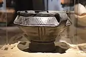 Examinations of the burial grounds, of which even the largest used continuously over periods of up to several centuries, contains no more than several hundreds graves, shows that the overall population density was low.[8] The dead were cremated and the ashes sometimes placed in urns, which had the mid-part in the form of an engraved bulge. In the 1st century AD this was replaced with a sharp-profiled (with a horizontal ridge around the circumference) shape.