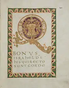 ![]() Initial for the Gallican version of Psalm 73 from the Golden Psalter of St. Gall (c. 890). | |