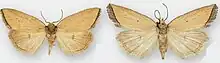 The generic name Pseudomarimatha is taken from the Latin pseudo (false) and Marimatha (the noctuid genus with which Pseudomarimatha has been confused and is likely to continue to be confused. The specific name refers to the yellow color of the forewings and body.
