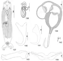 The sclerotized male copulatory organ, or "quadriloculate organ", has the shape of a bean with four internal chambers, as in other species of Pseudorhabdosynochus.[3]
