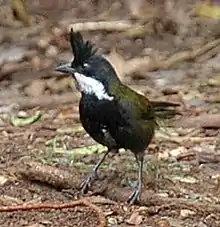 The quail-thrushes, jewel-babblers, whipbirds and wedgebills were traditionally included with the logrunners (Orthonyx) in the family Orthonychidae.[1] Sometimes the Malaysian rail-babbler and blue-capped ifrit (Ifrita kowaldi) were also included in the family.[2] In 1985, Sibley and Ahlquist found that the logrunners were not related to the others and included only the logrunners in the Orthonychidae.[3] They treated the others as the subfamily Cinclosomatinae within their expanded family Corvidae.[4]