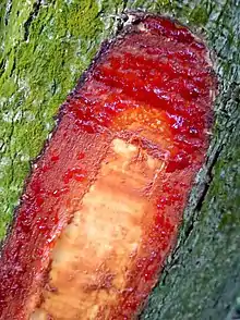 Pterocarpus officinalis, the dragonsblood tree, is a species of flowering plant in the family Fabaceae, native to southern Mexico, Central America, the Caribbean, and northern South America.[2][3] It is typically found in coastal freshwater or slightly brackish habitats, in association with mangroves that occupy the more saline areas.[4] Its timber is commercially traded.[5]