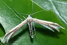 Pterophorus furcatalis, the Pittosporum plume moth, is a moth of the family Pterophoridae.[3] It was first described by Frances Walker and is endemic to New Zealand. This species can be found throughout the North, South and Stewart Islands. Its preferred habitat is dense native bush. Larval host plants include Pittosporum eugenioides and Pittosporum crassicaule. Adult moths are on the wing from November to March and are attracted to light.