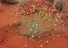 It is perennial herb, which grows from 0.2 to 1 m high, on sand or sandy clay. Its stems are slender, wiry and a dull blue-green in colour. It flowers from March to October with white- pink-purple flowers. It is found near streams on sandplains.[5]