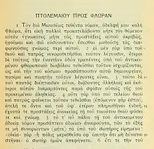 Ptolemy's works have reached us in an incomplete form in a fragment of an exegetical writing preserved by Irenæus;[2] as well as an epistle to Flora, a Christian[3] lady not otherwise known to us.