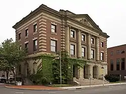 Public Safety Building, or Old Post Office, is a historic building in Cumberland, Allegany County, Maryland. It was constructed between 1902 and 1904, in the Classical Revival style. It is built of brick, rising from a monumental stone base. There is a slightly projecting pavilion with four engaged Ionic columns on the second and third floors. The building was built originally as the United States Courthouse and Post Office during the tenure of James Knox Taylor (1857-1929), who was Supervising Architect for the U.S. Treasury.[2] It served as a courthouse of the United States District Court for the District of Maryland from 1904 to 1933.[3] It is considered to be typical of buildings constructed during Taylor's tenure to the specifications of the Tarsney Act, which required competition in the design of federal buildings.[4]