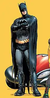 In the following weeks Dick becomes far less emotional, unapproachable and uncontrollable. He lashes out at Tim, Damian and even Alfred at times and is mostly seen in his spare time mourning the loss of Bruce. Despite Alfred trying to explain to Dick that he is Bruce's prodigal son, Dick refuses to take up the mantle. After Jason Todd takes up the mantle himself, it is revealed that Bruce told Dick not to become Batman as he believed that Dick could carry the torch as Nightwing.[6] After a long fought battle with Jason, Dick decides that enough is enough and with Damian Wayne as Robin, Dick becomes Batman.[7]