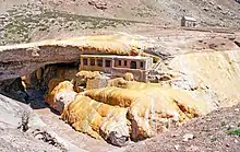 Puente del Inca (English "Bridge of the Inca") is a natural arch that forms a bridge over the Las Cuevas River, a tributary of the Mendoza River. It is located near the small village of Puente del Inca, in Las Heras Department, Mendoza Province, Argentina. The nearby hot springs are also named Puente del Inca.[1]